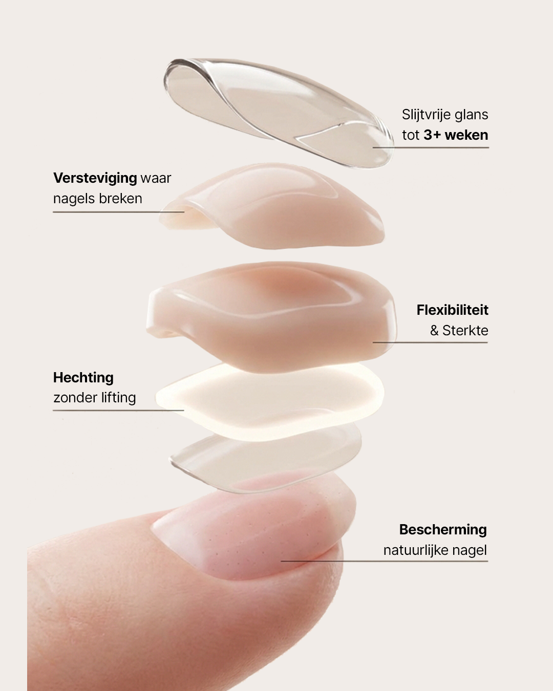 Onze formules zijn vrij van HEMA, DI-HEMA, HPMA en TPO en daarmee vriendelijker voor nagels en huid. Al onze producten zijn vegan en cruelty free. Veilig in gebruik voor zowel professionals als beginners.